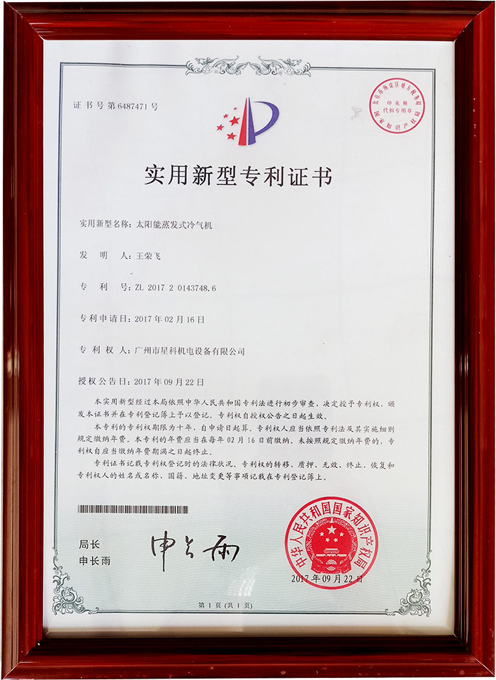星科實業-太陽能蒸發式冷氣機專利